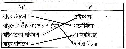 (ঘ) আবহাওয়ার তথ্য সংগ্রহকারী তিনটি যন্ত্রের নাম লেখো। উত্তর:- আবহাওয়ার