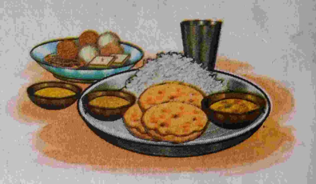 ডাল ভাত তরকারি ফলমূল শস্য,
