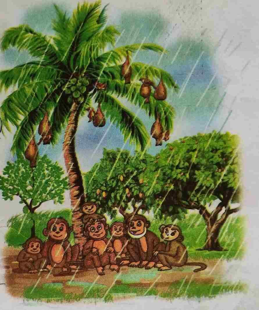 উত্তরঃ বাঁদরগুলো গাছের নীচে বৃষ্টির কারণে আশ্রয় নিয়েছিল ।