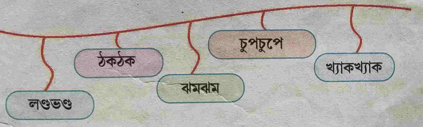 ৪। দড়িতে ঝুলন্ত সঠিক শব্দটি বেছে নিয়ে নীচের বাক্যগুলোর শূন্যস্থান