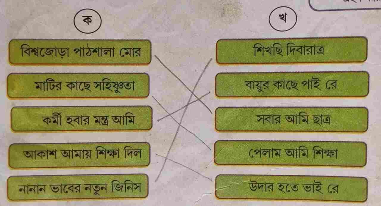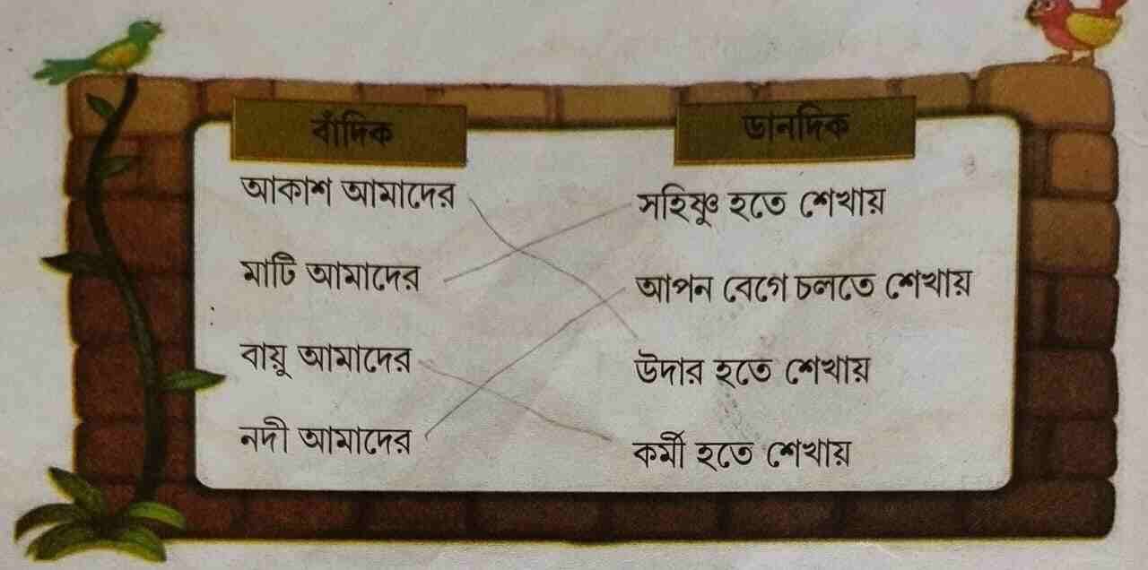 ডানদিকের শিব্দগুলির মিল ঘটিয়ে একটি সম্পূর্ণ বাক্য গঠন করি
