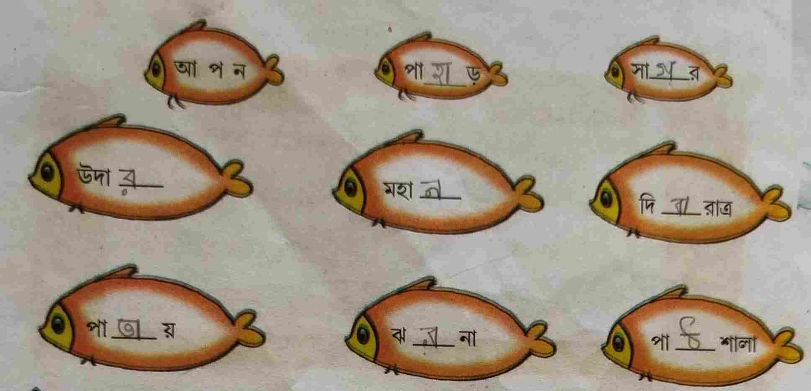 খ) এসো, আমরা নীচের শব্দগুলোর শূন্যস্থান পূরণ করি —