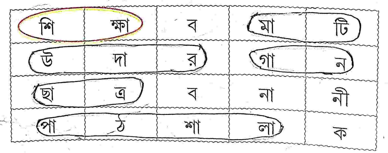 ৫) এসো, আমরা এবার শব্দ নিয়ে খেলা করি। নীচে একটি শব্দের তালিকা রয়েছে। সেই