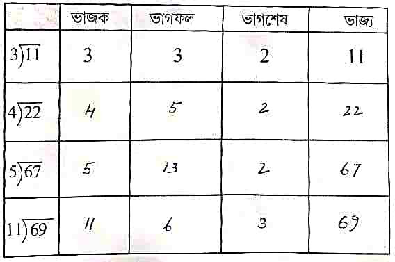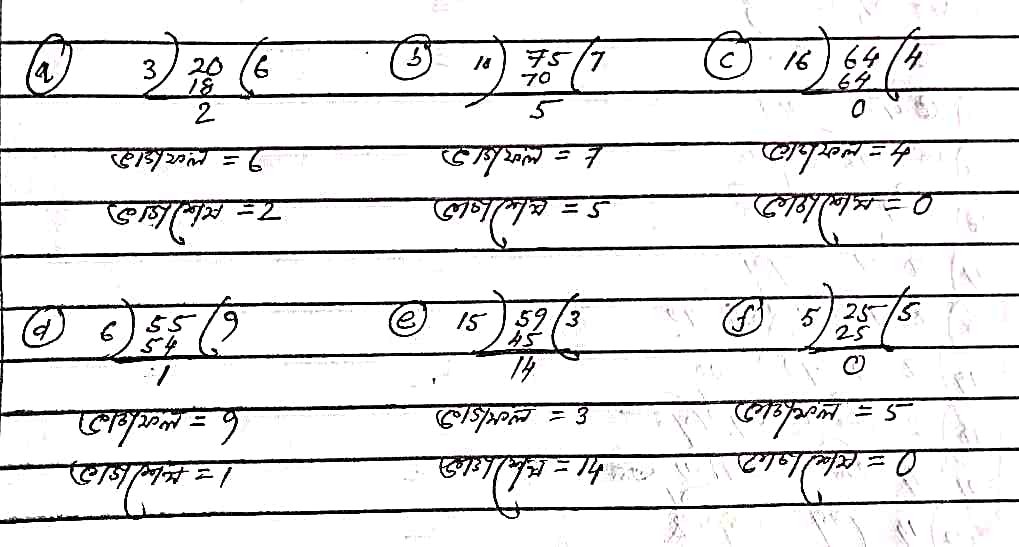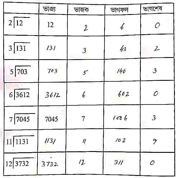 g) দলে দলে ভাগ ভাগ হও । ভাজ্য , ভাজক, ভাগফ্ল, ভাগশেষ বের করে লেখো ( সংক্ষিপ্ত নিয়মেও করতে পারো)