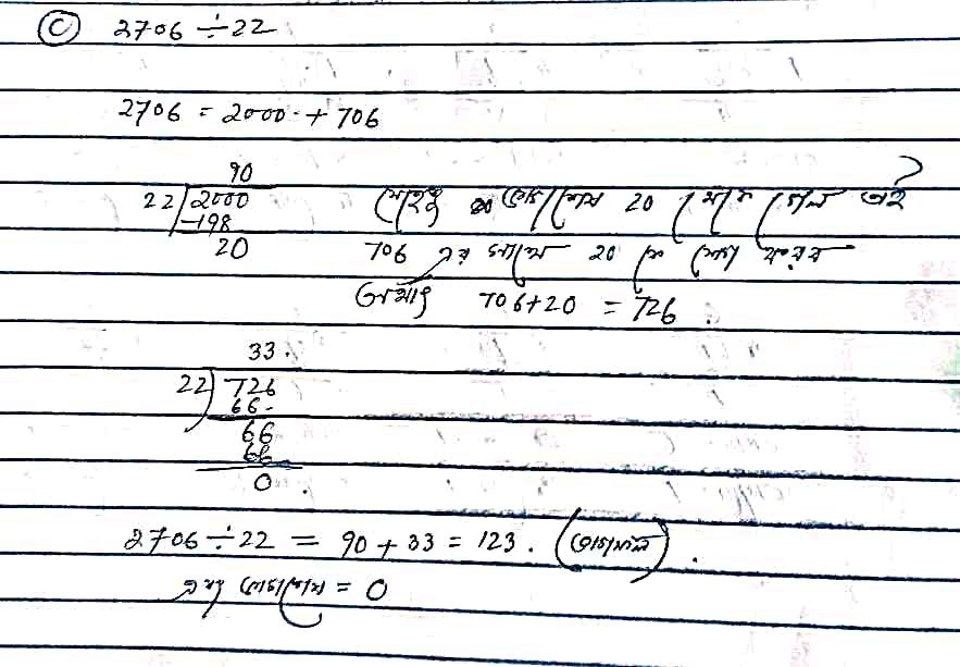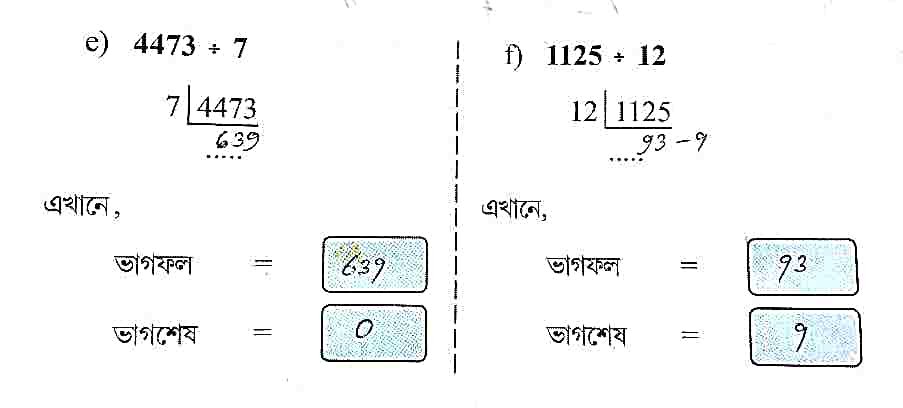 এবার বিয়োগের সাহায্যে সমান সমান ভাগ করে ভাগফল ও ভাগশেষ বের করো।
