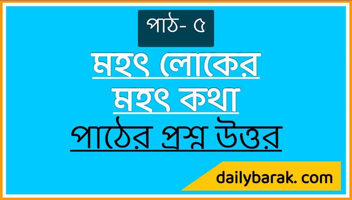মহৎ লোকের মহৎ কথা পাঠের প্রশ্ন উত্তর, পাঠ-৫, Class 5 Bengali Lesson – 5, Class 5 Bengali Notes . (toc) মহৎ লোকের মহৎ কথা (১) বাণীকান্ত কাকতি ‘নতুন ডাক্তার হয়েছেন, তার চিকিৎসা খুব ভালো’ – ব্যঙ্গ করে দুজন মানুষ কয়েকজনরোগীকে একথা বলে রাস্তার পাশের ঘরটি দেখিয়ে দিলেন । সেই রোগীদের অনুসরণ করে  নতুন ডাক্তারের কাছে … Read more