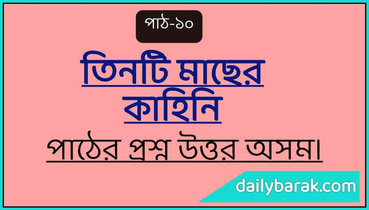 তিনটি মাছের কাহিনি পাঠের প্রশ্ন উত্তর – পাঠ-১০ Class V Bengali Lesson 10
